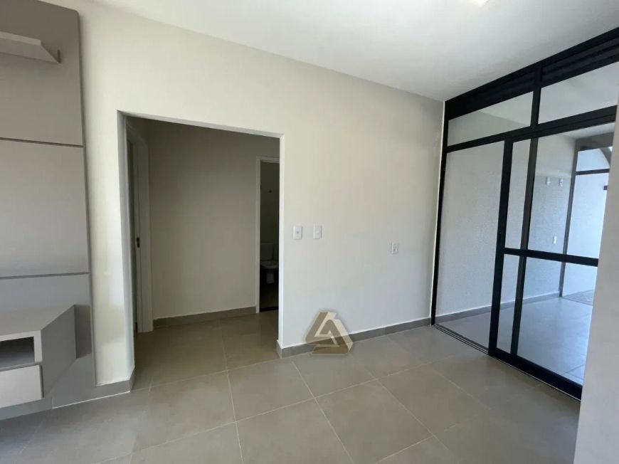 Sala 2 ambientes com painel e armários;