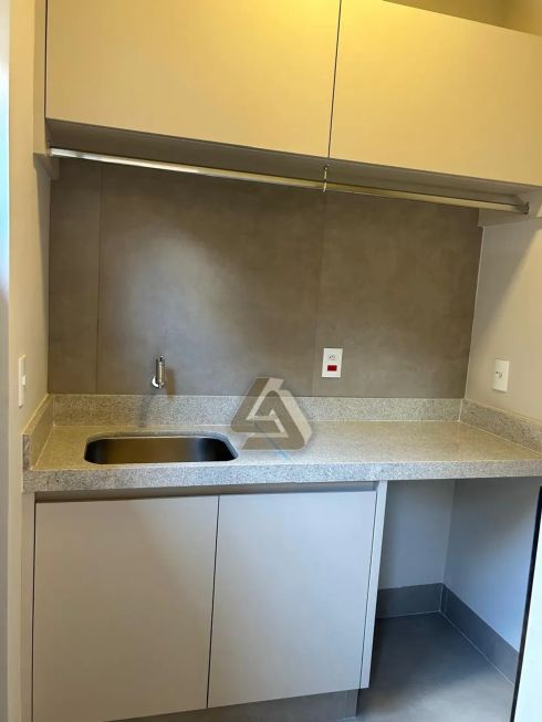 Cozinha planejada, com cooktop, forno e microondas;
