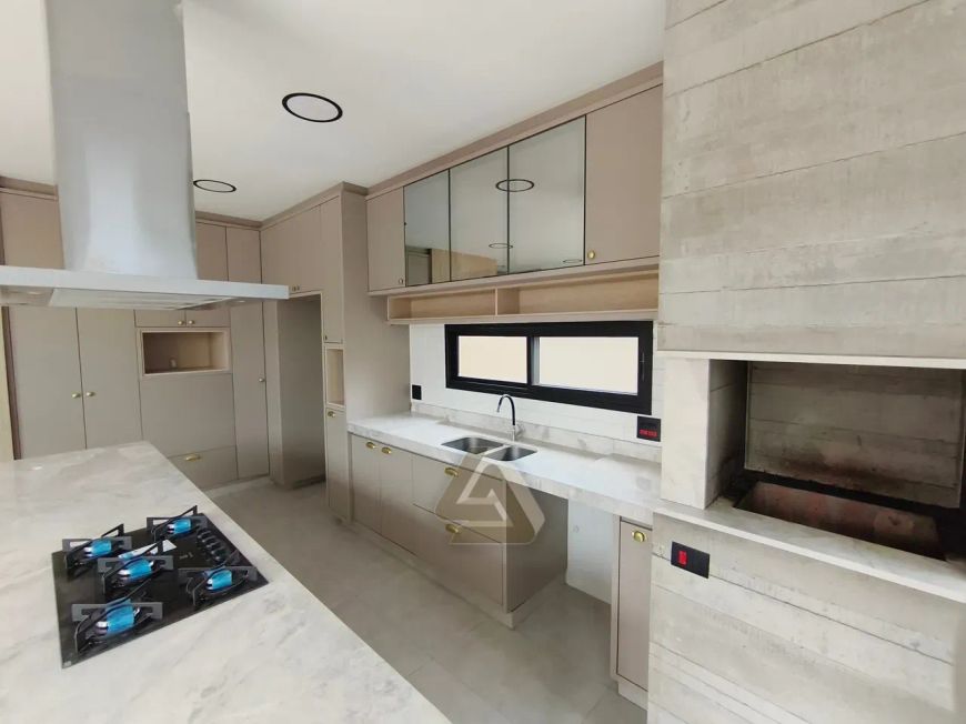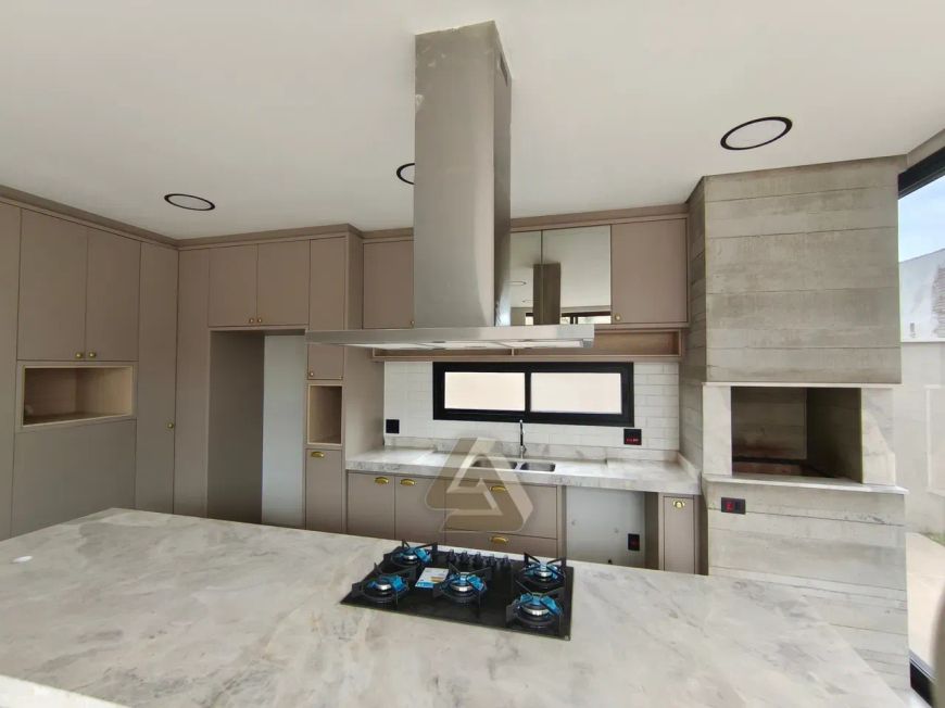 Cozinha gourmet, com armarios planejados, ilha, cooktop e forno;