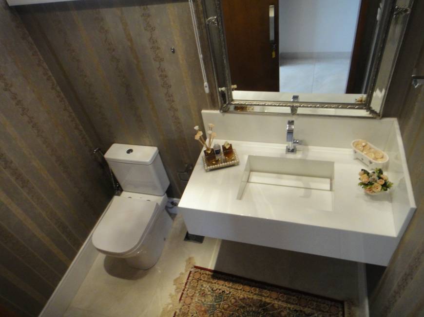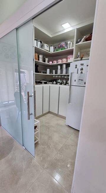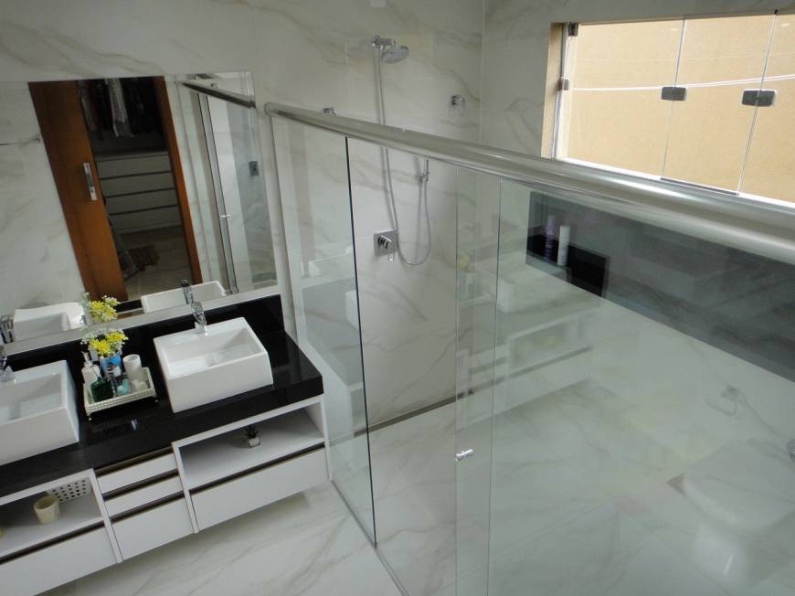 2 apartamentos no andar superior, com sacada em vidro temperado e corrimão em aço inox, armários planejados, banheiros com bancadas em granito e metais Deca