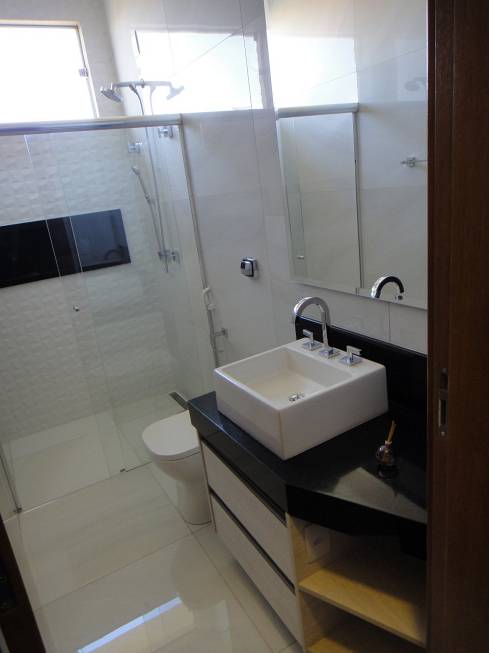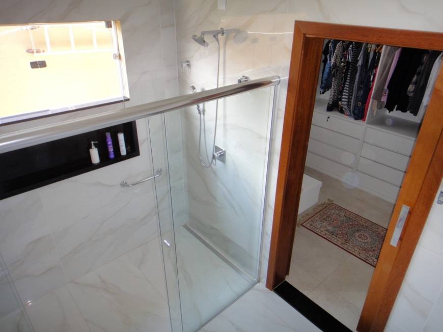 1 suíte no térreo, com closet e banheiro com bancadas em granito e metais Deca
