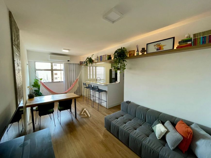 Apartamento de 1 dormitório, à venda, bem localizado na av. Alberto Andaló; Sala dois ambientes com cozinha integrada; Banheiro social; Área de serviço separada; Apartamento inteligente, ar-condicionado split na sala e quarto, piso vinílico e porcelanato Portinari nas áreas molhadas; Marcenaria completa sob medida; Bancadas da cozinha e banheiro em quartzo branco; Sistema hidráulico e